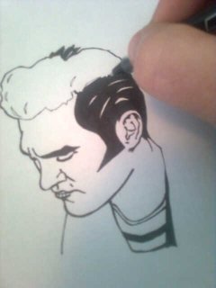 Now that we have our new blog I am able to show more of the creative process behind some of the shirt/onesie designs we come up with here. Originally I wanted to so a Morrissey baby onesie because the idea of someone so dramatic and overly emotional on a baby amused me. I love the Smiths so this was something I wanted to pursue. I started my basic sketch and then gave it some ink and the overall image i was very happy with.