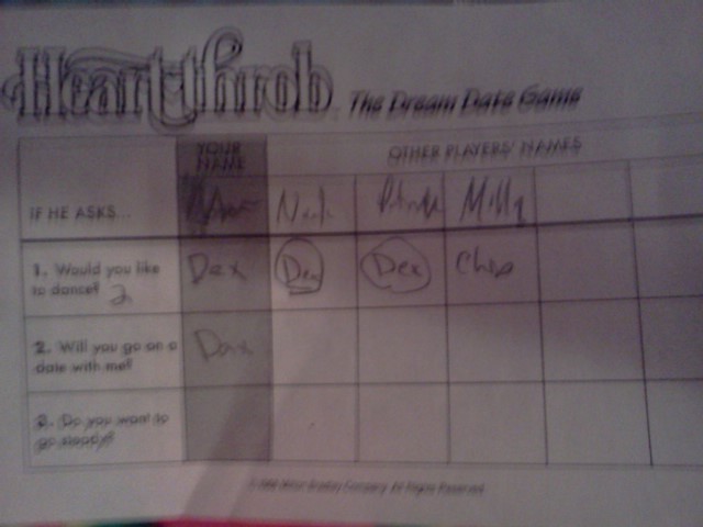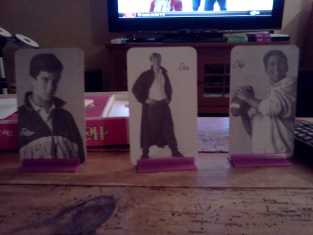 The weekend has been nice so far. We got our closing date on the house which will be June 3rd. So basically we will sign the papers, get the keys, and we will run right over and start doing things. I can’t wait to clean that back yard out, I’m totally ready. Friday night we went to our friends house to play some board games. One game in particular was probably the best/worst game I have ever seen. The game was called “Heartthrob” and was totally ridiculous. Three cards are drawn with three dudes, all insanely attractive. They are presented on the table so that everyone can see how hot they are.