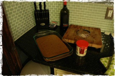Usually the wrestling PPV events at my house consist of my soon-to-be brother in-law Bill and our friend Doug. Last night we had 14 people, it was pretty ridiculous but extremely awesome. The fact that you can get 14 people in one room to watch wrestling brings a smile to my face. Nicole read online, from one of the many blogs she reads, about setting up a baked potato bar. That idea was genius. We grabbed a big bag of baked potatoes, some chili, cheese, sour cream, butter, and bacon.