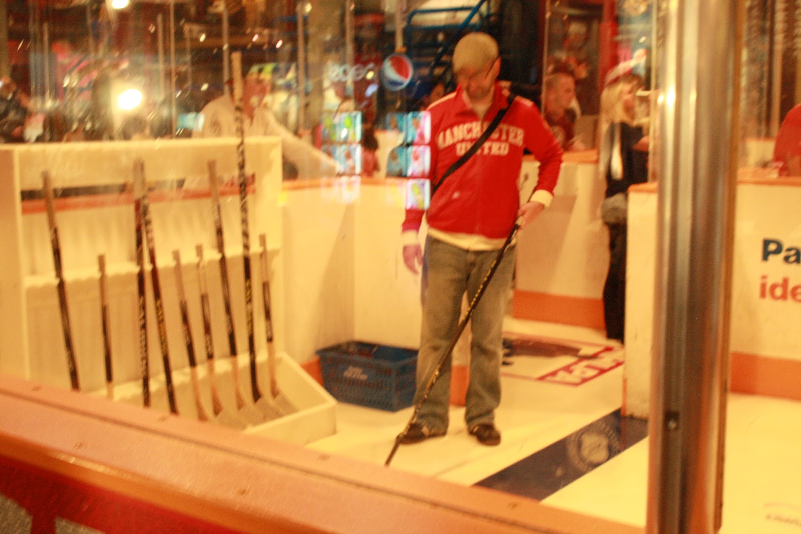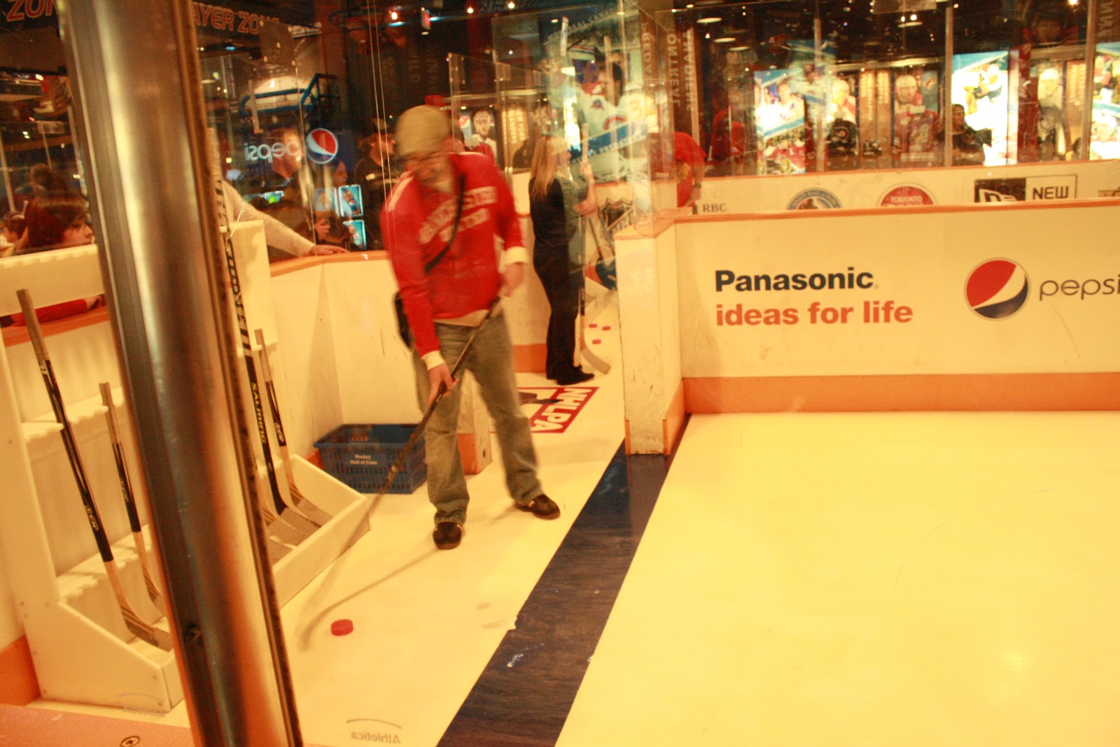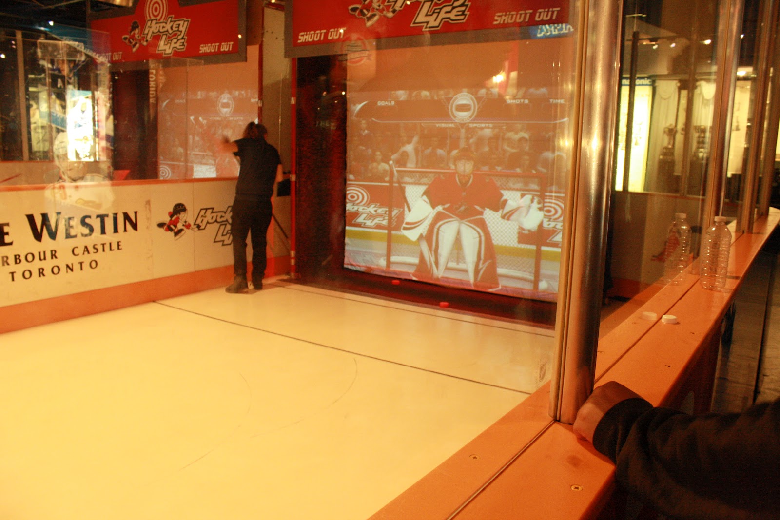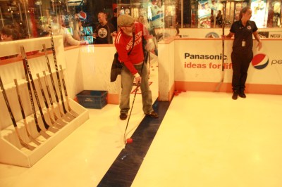 They also had cool things for kids and man-kids to do like shoot pucks at a virtual goalie, or block shots from a puck machine. I totally didn’t want to do it but Nicole made me. It ended up being sort of fun though.