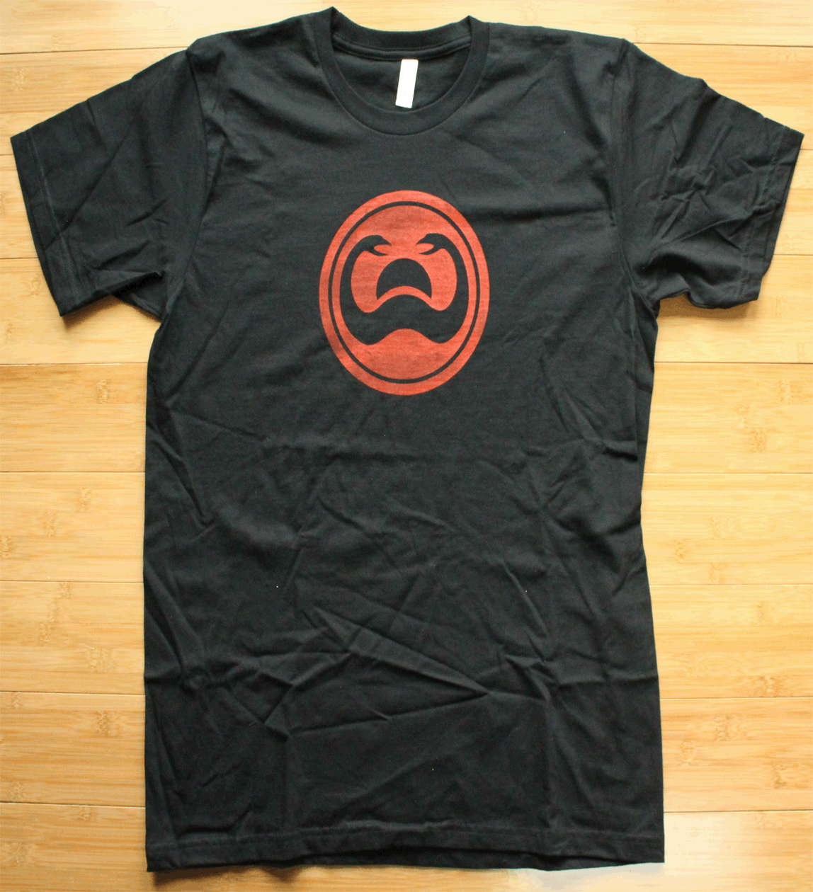 I have a new Conan design that I decided to do. I had come across a red ink that I loved in terms of how it looked on a black shirt. Most water-based inks end up looking barely visible on black shirts unless you get an opaque ink, but I hate using those. I also didn’t want a plastisol look with a big shiny red image that will end up looking stiff and shitty over time. I wanted a faded, cool, look. This ink worked out perfectly and I love this shirt. Any fan of “Conan” will know the the Thulsa Doom symbol of the serpent.