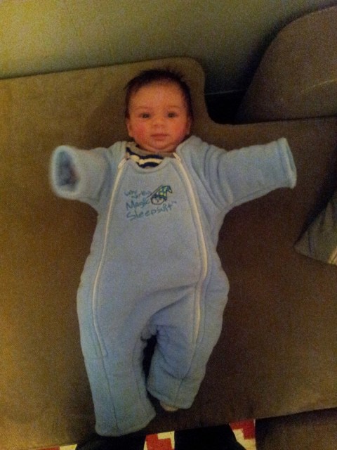 It seemed hopeless. We tried some techniques. One of them being, swaddling her with one arm free. Occasionally this would work for maybe 10 minutes. Our pediatrician suggested that we loosely swaddle her, so that she could move her arms around in the swaddle. This was perhaps the dumbest of ideas. She wouldn’t relax at all doing this. Her goal became to get her hands up out of the swaddle thus getting stuck in their final destination-under her chin. Then she would just start screaming and would be awake. I asked around, speaking to people we knew for advice. One set of friends that we know recommended the “Magic Merlin Sleep Suit”. They had luck using this thing. Their kid hated being swaddled, so she never developed the addiction. It was funny because our kid hated it as well, but couldn’t sleep without it. According to Amazon, this Magic Merlin Suit suit is described as a transitional piece to help get the baby out of, specifically, the rock and play and swaddle. This sounded like a sure thing! And for only $40.00! I’m being sarcastic. This was like placing a $40.00 dollar bet on black or red at the roulette wheel, and I had that gut feeling that I was pretty much going to lose. I tried to be optimistic. My wife laughed at me and laughed at the suit. She pretty much knew I had just blown $40.00. I wasn’t convinced. I put her in the suit…..