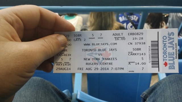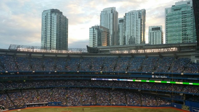 After dinner we headed outside and noticed a ton of people in Blue Jays gear heading to the stadium. It was a really nice night and we didn’t really have plans to do anything specific, so we said “why not?” Off to the Rogers Centre , off we went for a random baseball game where it happened to be against the NY Yankees. I really don’t care about baseball anymore, although I did when I was a kid. This made the game a bit cooler to see, especially because I got to see Derek Jeter play before he retires. It was kind of cool.