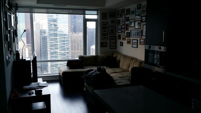 We didn’t get a hotel, as these days, you can get a way better room for a fraction of the cost using Airbnb. If you are unfamiliar with this site, its basically people that rent out their apartments or other properties they own. In this case, we rented an apartment on the 34th floor of the Tiff on Widmer St. right in the heart of downtown Toronto. It was a one bedroom apartment overlooking the city with a nice balcony. A pretty awesome deal.