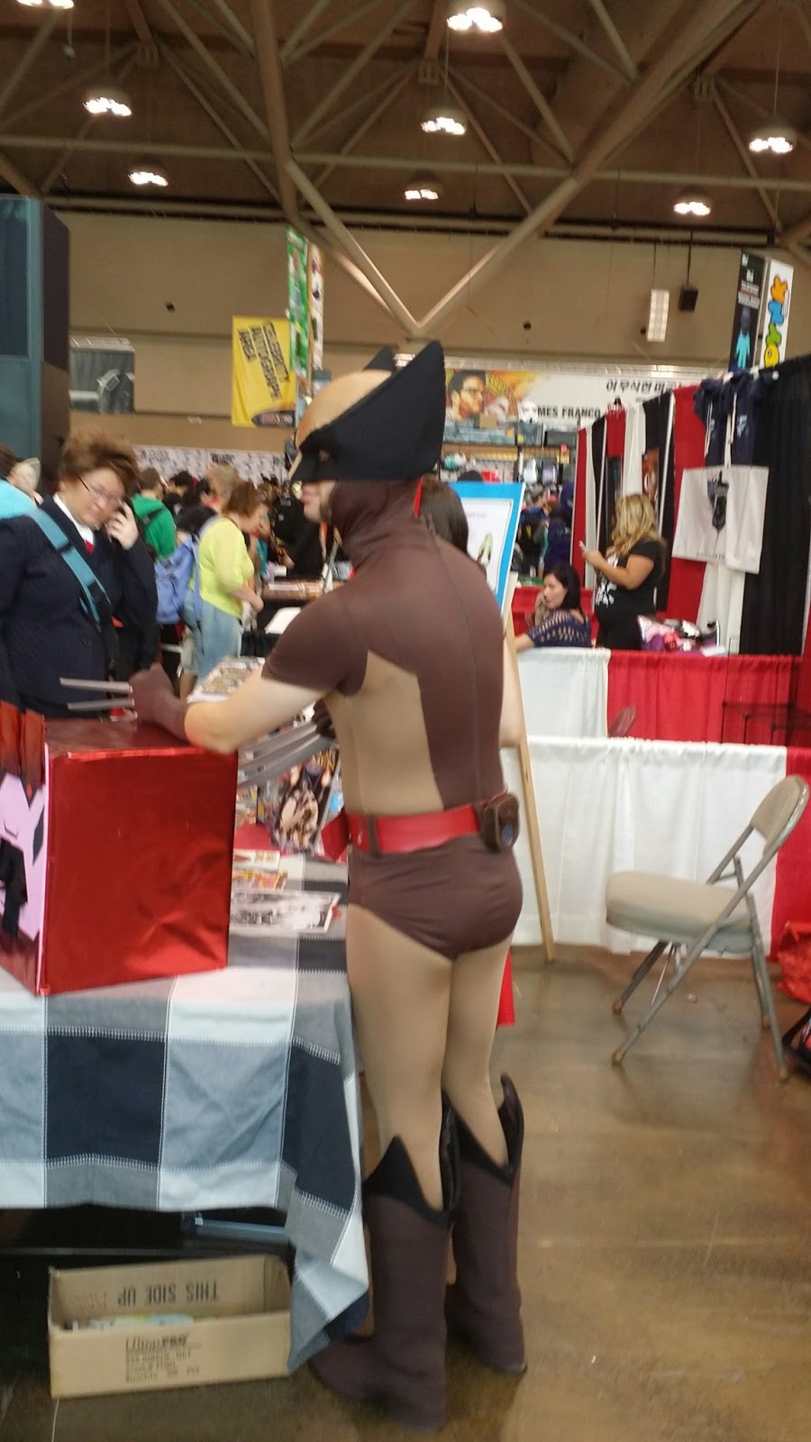 The second section of the convention center was the best. It was the section with all of the comic book artists and other random artisans from all over. People selling custom shirts, artwork, cosplay weapons, etc. It was very cool and we spent the most time here. I was trying hard to find my daughter a Tardis Dress, but was unable to. Actually there was hardly anything there for babies/toddlers. It really made me think about looking into a vendor slot for next years show, but I’ll probably pass.