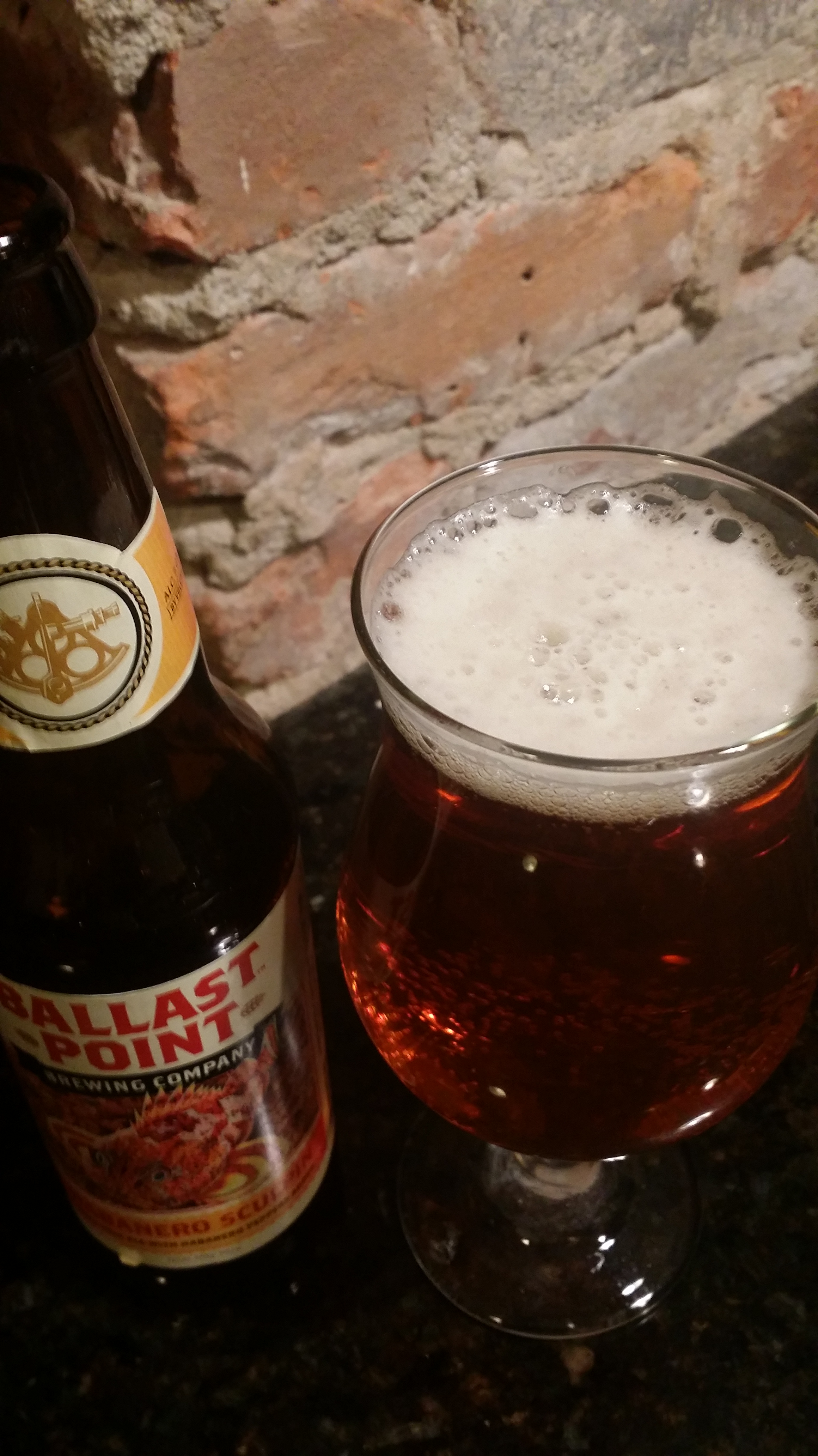 Around two years ago, Ballast Point started distributing their beers in the Buffalo area. They did the usual introductory tap takeover at a local bar, which my step-dad and I gleefully attended. We pulled our usual hijinks, getting into the tasting area early like a couple of groupies. Ballast Point came to the event with an arsenal of beers, but one in particular knocked our socks off – Habanero Sculpin.