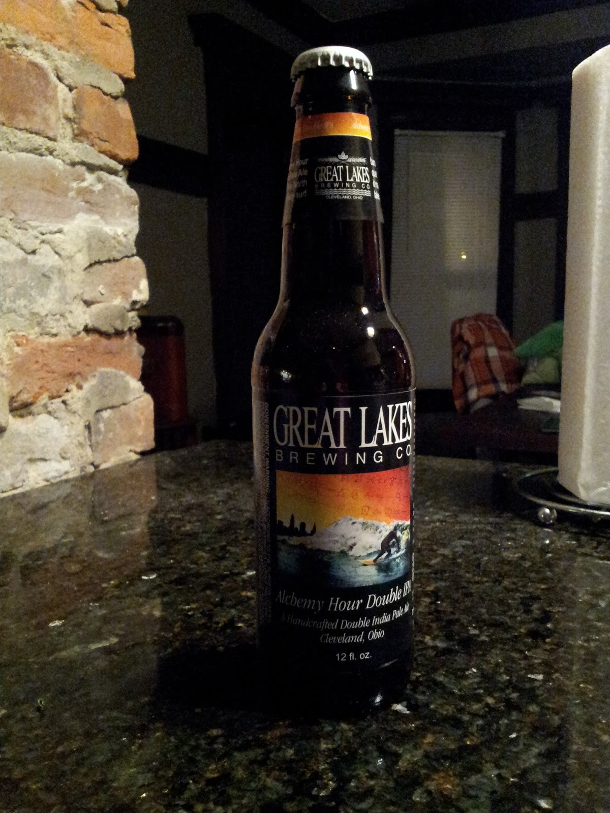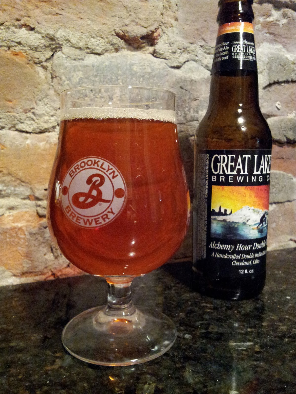 My wife and I were married in Columbus, and immediately after we were pronounced “husband and wife”, we hightailed it to Cleveland and had lunch at the Great Lakes Brewery. I was never a big fan of their beer, not that it was bad, but more of the fact that they didn’t brew beers that were my style. The “Commodore IPA” was below average and nothing to really celebrate. I congratulate them on their most recent brew, “The Alchemy Hour Double IPA”. If this beer is available in your area and you love IPA’s, this beer deserves a try. When my step-dad and I sat down to enjoy this beer, we both agreed that there was something about the hop flavor we enjoyed. At first we thought they used Citra Hops, but we were wrong. The familiar flavor though came from the Nugget Hops which makes sense because we are also fans of Troeg’s “Nugget Nector”, which is also awesome. This beer has nice head, awesome color, and a great balance of malt and hop. I highly recommend that you drink boat loads of it.