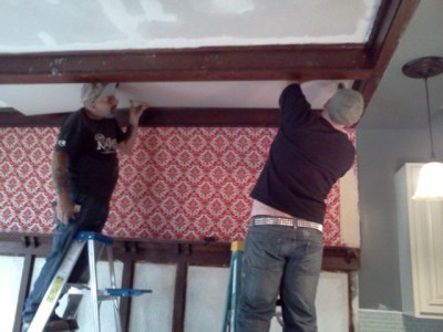 The break from house work has ended and Saturday my dad came down to help tear apart the dining room. Like every other project in this house, a simple idea turned into a huge pain in the ass. I needed help on the bay window. The plaster was crumbling and there were random sections of drywall that were heavily damaged. Another masterpiece created by the previous owners. We figured that if we were going to work on this project, we might as well do it right. We decided to tear everything down and insulate the entire wall. Of course when we started, we pulled down a section that had endured generations of water damage that was ignored. This section was rough, and there was serious rot. We pulled out some of the heavily rotted stuff and put in some 2×4’s so that we would have something to drill the drywall into. Plaster is awful and removing it is even worse. The dust and filth that spreads all over the house is brutal. It was clear that we were not going to finish this project that day, but I wanted to at least get help doing the upper portion of the bay window. I figured that if we could at least get that done, I could do the rest (or as much as possible) on Monday and Tuesday, because I took time off from work.