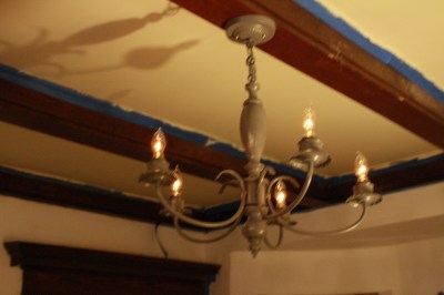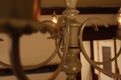 | Nicole found an old chandelier at the thrift store that she fixed up with some paint and some TLC. |