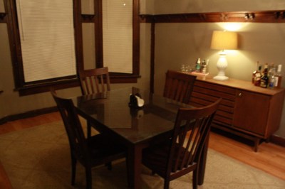 We have busted our asses since buying the house with a set of goals that we wanted completed by winter. We would like to thank my Mom, my Stepfather Henry, and my Dad Bob for helping us accomplish everything, it would have been a lot harder to do without their help. New kitchen windows, glass block windows in the basement, roof replacement on the room off the kitchen, and redoing the dining room including a complete tear out off the bay window with new drywall. We are exhausted, but one half of the first floor is totally complete. Here are some pictures of the dining room: