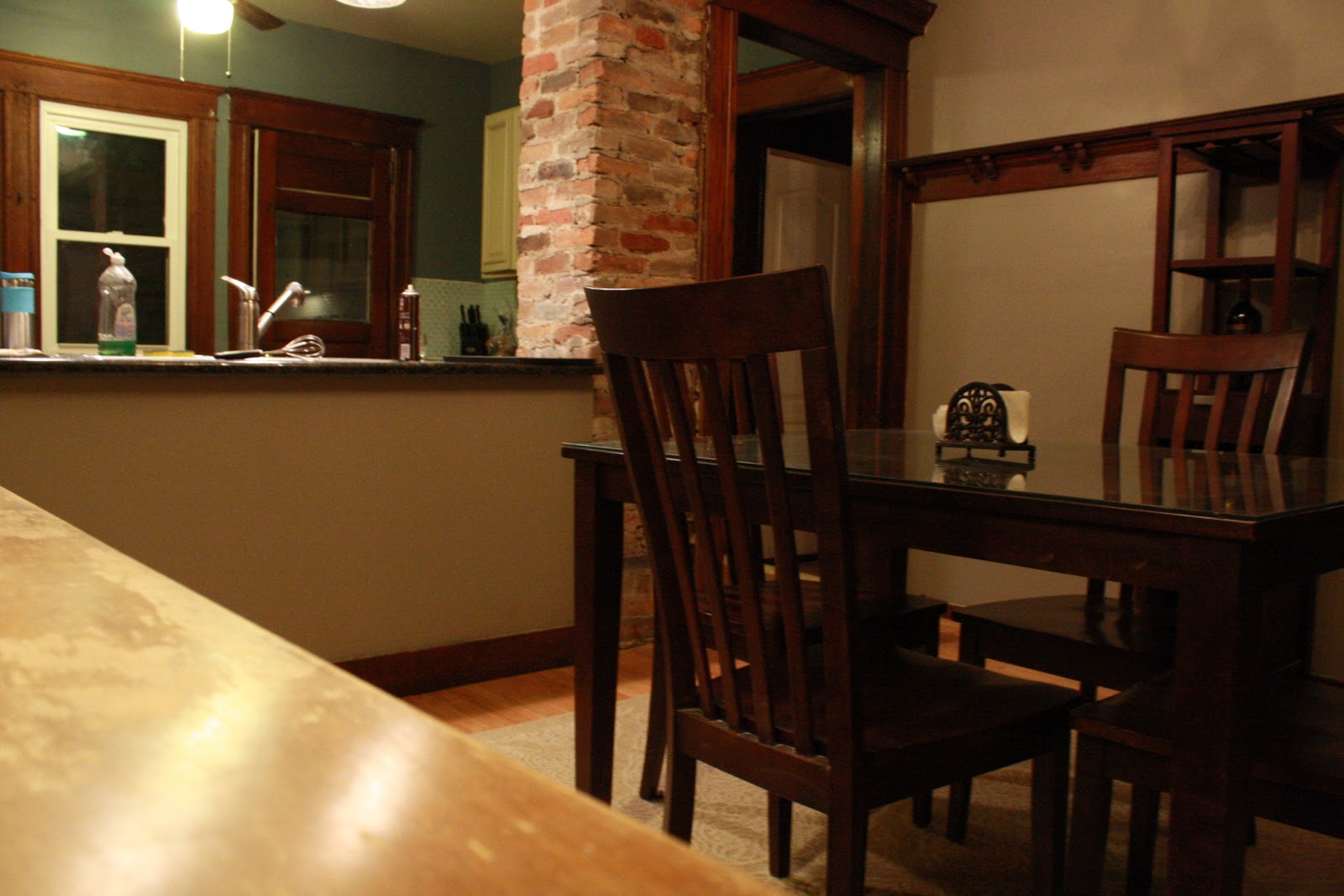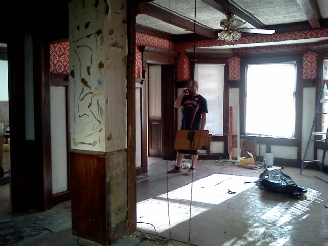 | Here is a really old picture from when we tore out the kitchen. You can see what the dining room used to look like. |