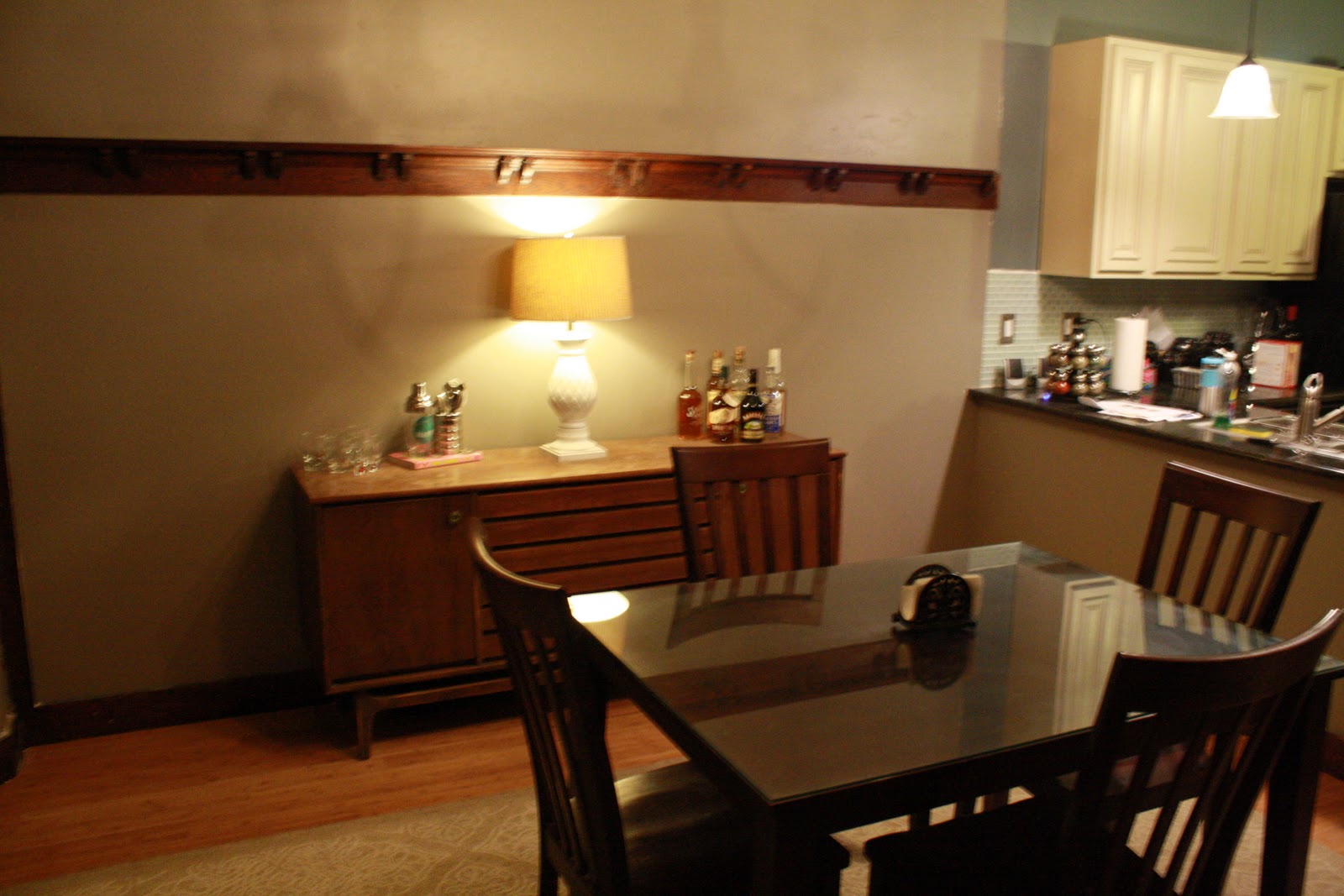 We then wanted to get a pedestal table for underneath it. It seemed like everywhere we looked they were between $150.00 ( for a mediocre one) and up to $500.00+ (for better quality ones). We tried looking on craigslist but had no luck. Finally on Sunday we found one for $60.00 but at the last minute the lady called us and said that her husband had sold it without telling her. Lame. So we were back to square one. We found one at the local AMVETS (thrift store) for only $45.00 and it was super heavy duty. Old furniture is the best if you can restore it because everything was made so well back then. We took the table home and sanded it down. Nicole is in the process of painting it and I should have some pictures later on in the week.
