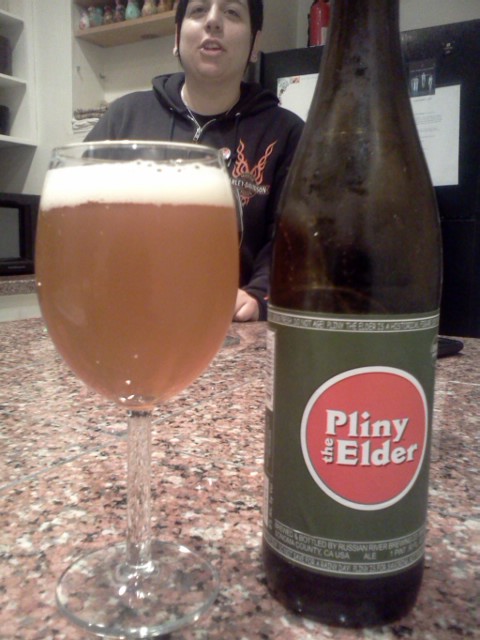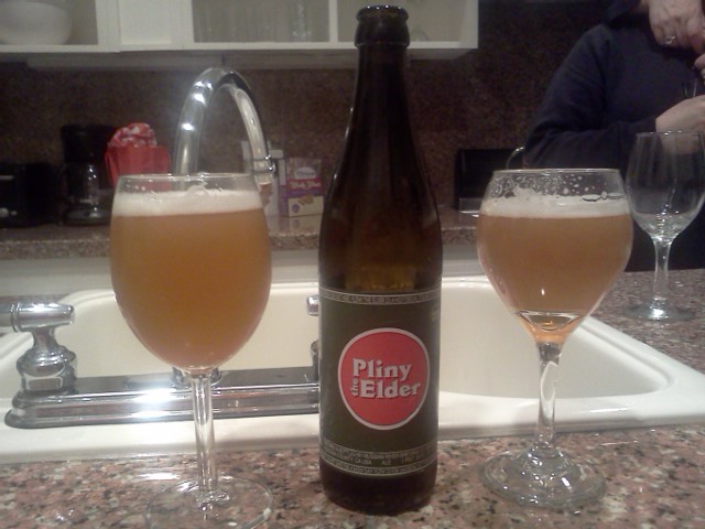 Pliny The Elder is regarded by many as being one of the 10 best beers in the world. My stepfather hyped this beer to me for months leading up to our trip to the point that I started to worry a bit. Would I still be able to give this a fair review with all of this hype or would I be hit with that mild disappointment that often accompanies heavily hyped things? It’s sort of like years ago when the “Blair Witch Project” came out. I was fortunate enough to see this movie without knowing anything about it. It was the first of its kind to do what it did so it was hard not to praise it however I know many that thought it was stupid and lame, all of which went to see it after hearing the hype. When we arrived at our apartment in San Francisco, my sister had 2 chilled bottles waiting for us, and the beer was even more impressive than I ever thought. This was the perfect double I.P.A., no question about it. The beer pours a hazy golden color with not much head. I found it to have more carbonation that some of the other double I.P.A.’s I’ve had. Pliny gives off an incredible aroma of pine with barely a hint of fruit. It was a little too cold for our first few tastes so the hop explosion was very intense, but as the beer dropped in temperature you could taste every element to this beer perfectly. An initial hop explosion that leaves a citrus, grapefruit, taste lingering behind with absolutely no undesirable aftertaste. The only thing that I can find wrong with this beer is that it is incredibly difficult to find. Places were sold out of it or had limited quantities. My stepfather was able to come across two stores that had a few bottles left and in each store he took the remaining beers. If you are ever on the west coast, this beer is a must!