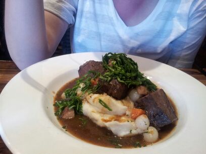 For lunch we headed back into the city to the Gas Lamp District, an area in the city loaded with shops, places to eat, and pubs. I had Nicole pick the lunch destination and she surprised me by picking a place that was right up my alley, the “Hopping Pig”. The Hopping Pig is a little place with an open front, some exposed brick, great taps, nice menu, and cool background music (I believe they played The Smiths the entire time we were there). Having driven, I only treated myself to one beer, Port Brewery’s Erasure IPA, which was solid. Nicole ordered the Short Ribs and I ordered the Yellow Tail.