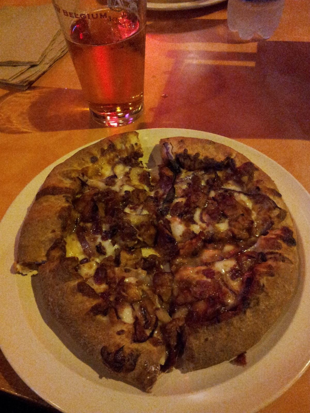 Lets Get back to Woodstock’s. I ordered the BBQ chicken pizza with a pint of freaking Union jack from Firestone Walker.