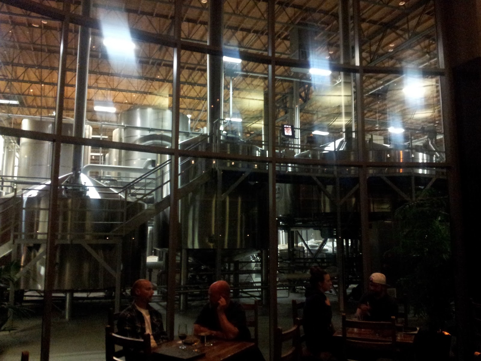 When I think of craft beer, Stone Brewing is one of the first breweries I think of. They are like the Bruce Lee of brewing. They took a look a traditional craft brewing at the time, and tossed all rules and tradition out the window. Setting themselves apart from the rest, they are true icons of the craft beer movement. This was the nicest brewery I’ve ever been to. It was sort of hard to find the place, not because it was complicated direction-wise, but the building looked like some cookie cutter office park and we had initially driven past it. Parking was almost impossible as the lot was totally full. Once we got in, it was like stepping foot into Willy Wonka’s Chocolate Factory. Ok maybe not that extreme….but I was pretty happy. The eating area is amazing with a huge outdoor section in a lush Japanese garden that actually had trails which led to little social areas with fire pits, chairs, mini bars, it was awesome. We sat down outside, each table having one of those heaters in case it was a bit chilly. I wanted the beer on cask which was some sort of special IPA with ginger (if I remember correctly), but they were out of the cask. I was upset..but not really, there were tons of beers to choose from. The cool thing about stone is that they carry other craft beers from other brewers. I was in the mood for a cask brew….