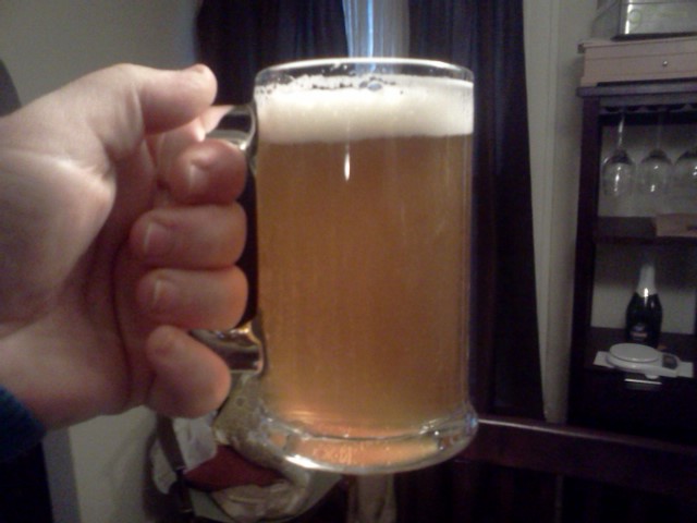 I had passed by this beer numerous times at the beer store and it had always caught my eye. After reading some mediocre reviews that delayed previous impulse purchase attempts, today I caved in and decided to give it a try. The beer poured a nice hazy, golden amber and had a really impressive thick, clingy, eggshell colored head on it that remained constant for most of the beer.